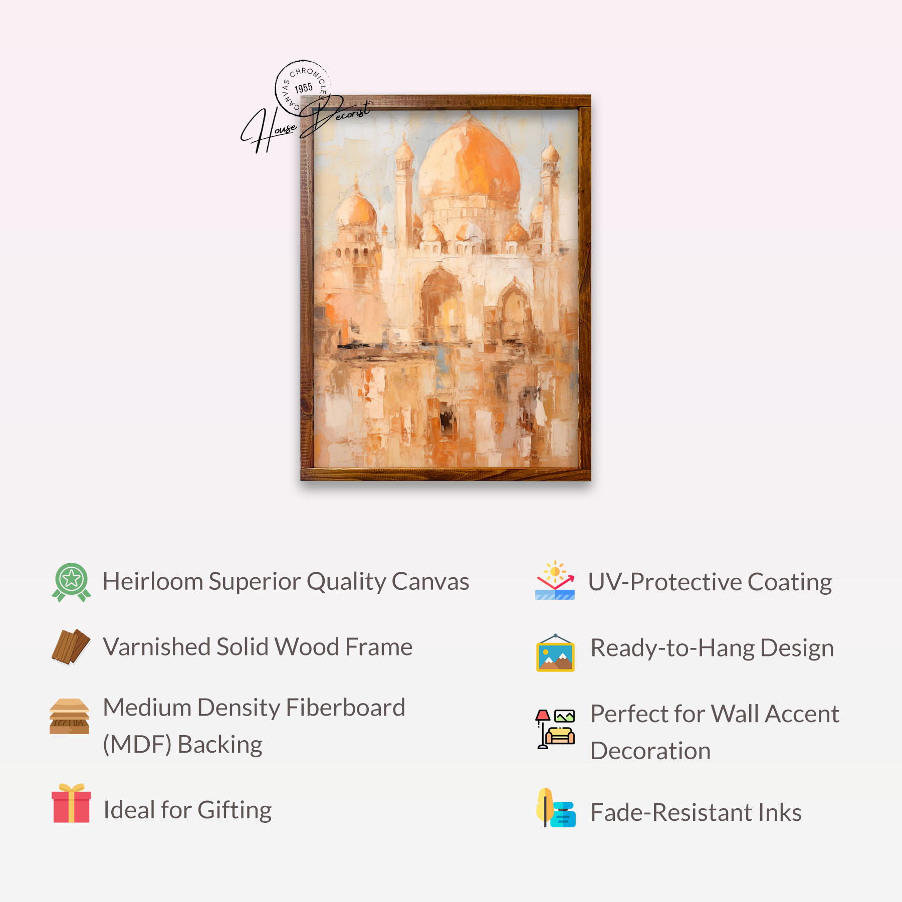 Immerse your space in timeless elegance with our canvas art. Crafted with heirloom quality, this piece features a varnished solid wood frame and meticulous craftsmanship. Ideal for gifting or wall accent decoration, it’s a versatile decor piece that blends charm and sophistication effortlessly.