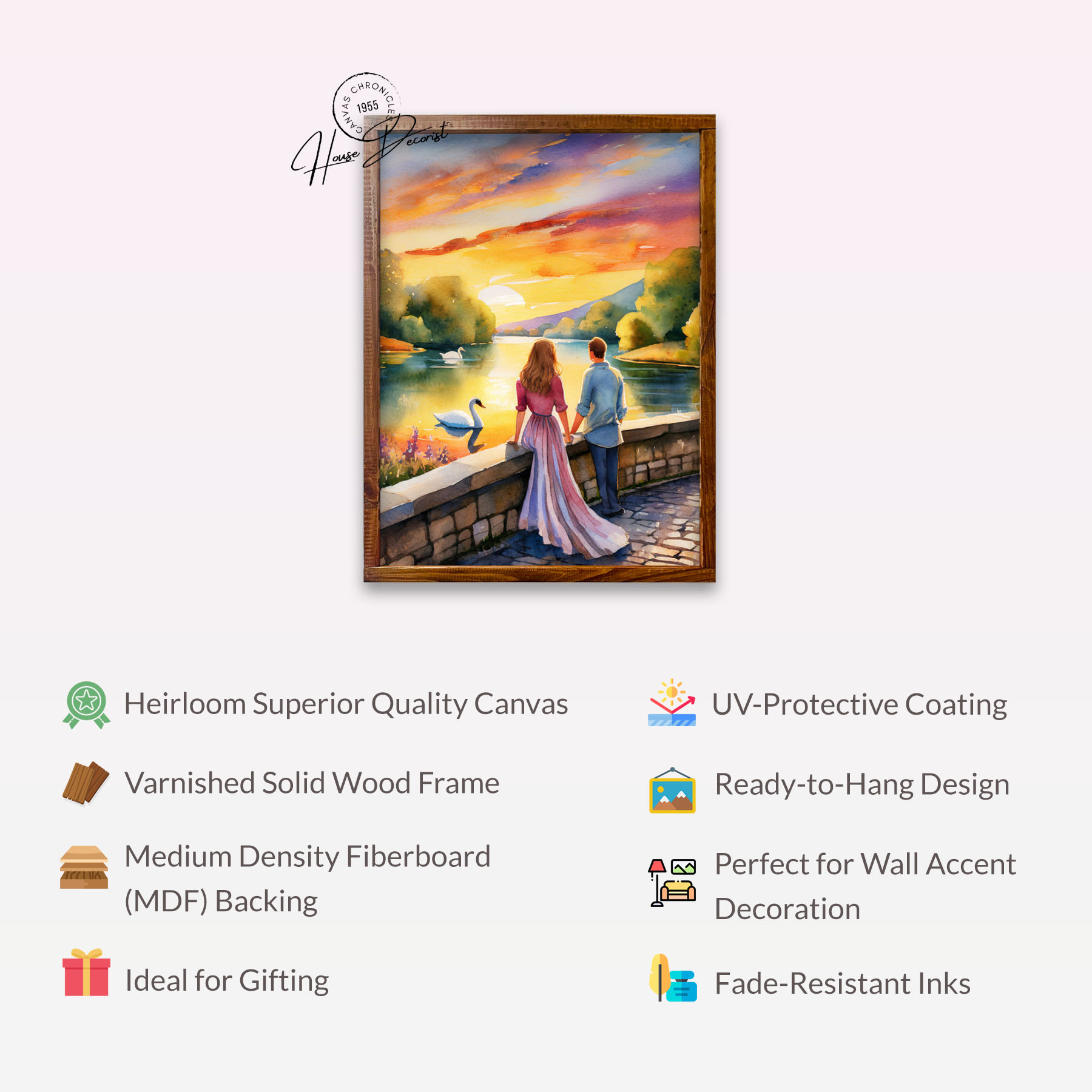 Immerse your space in timeless elegance with our canvas art. Crafted with heirloom quality, this piece features a varnished solid wood frame and meticulous craftsmanship. Ideal for gifting or wall accent decoration, it’s a versatile decor piece that blends charm and sophistication effortlessly.