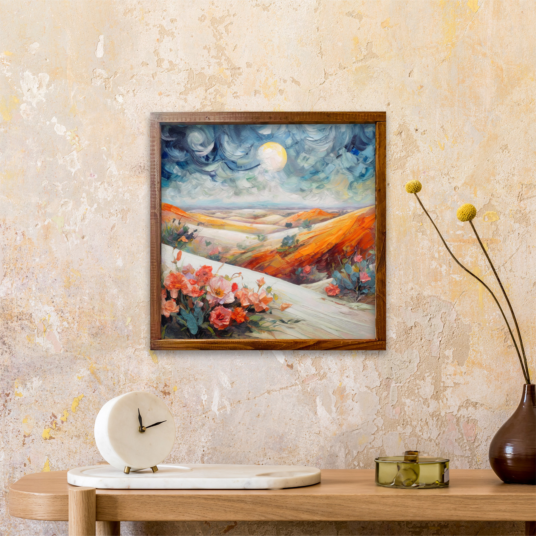 Immerse your space in timeless elegance with our canvas art. Crafted with heirloom quality, this piece features a varnished solid wood frame and meticulous craftsmanship. Ideal for gifting or wall accent decoration, it’s a versatile decor piece that blends charm and sophistication effortlessly.