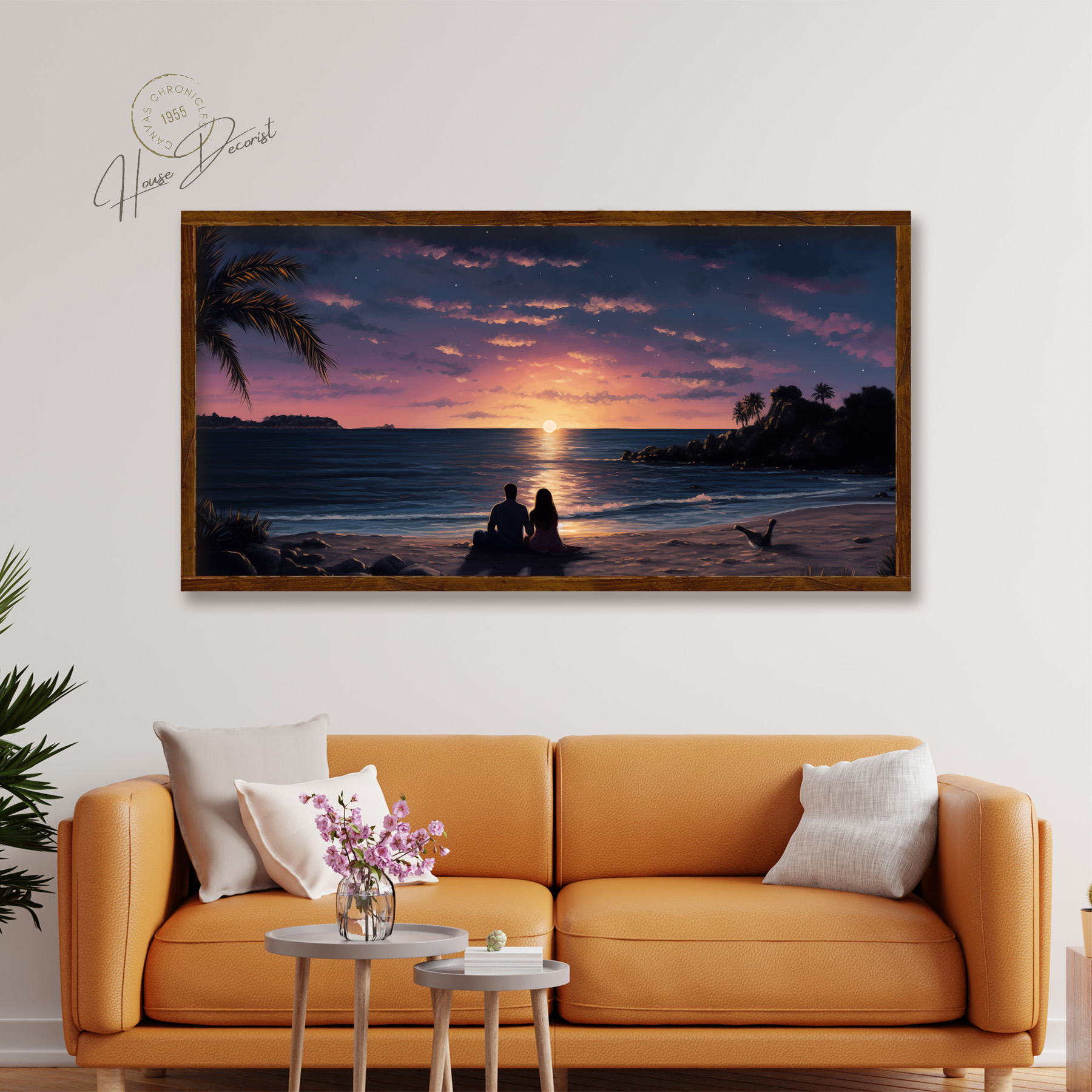 Night Serenity: Acrylic Beach Scene with Strolling Couple