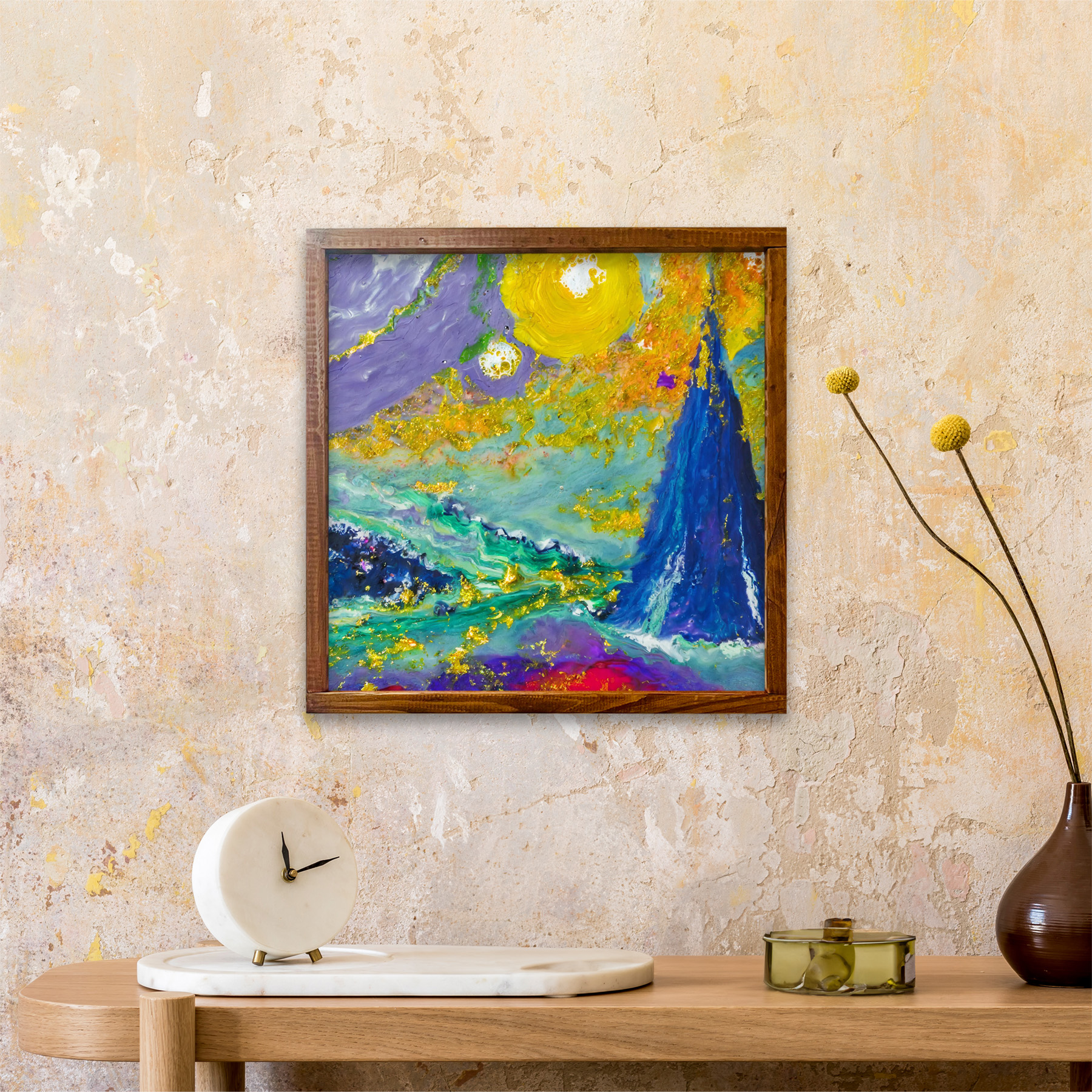 1 solid wood framed canvas wall art