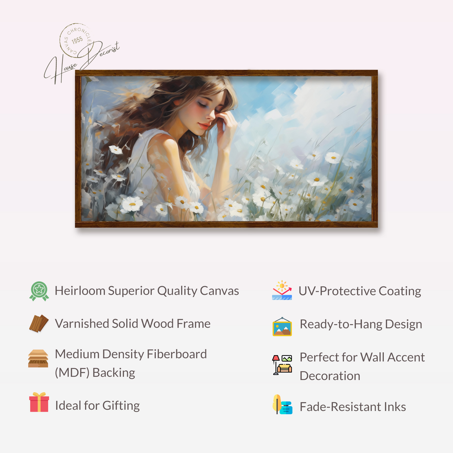 Immerse your space in timeless elegance with our canvas art. Crafted with heirloom quality, this piece features a varnished solid wood frame and meticulous craftsmanship. Ideal for gifting or wall accent decoration, it’s a versatile decor piece that blends charm and sophistication effortlessly.