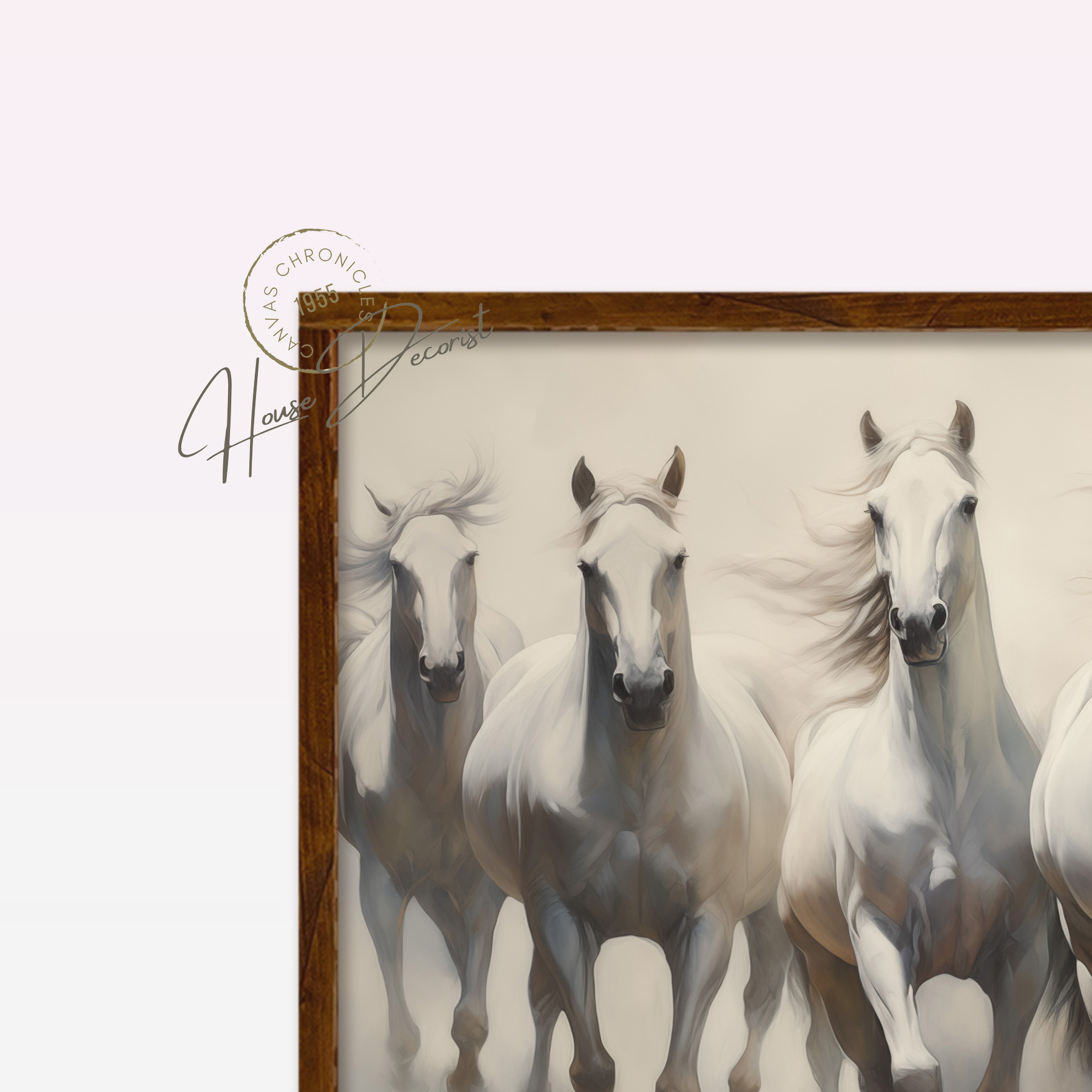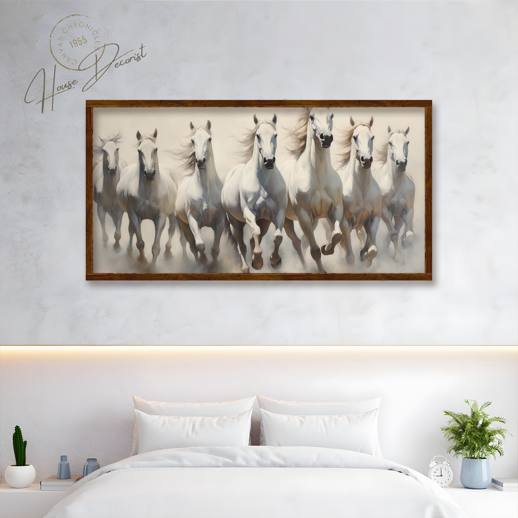 Seven White Stallions: Acrylic Canvas Elegance