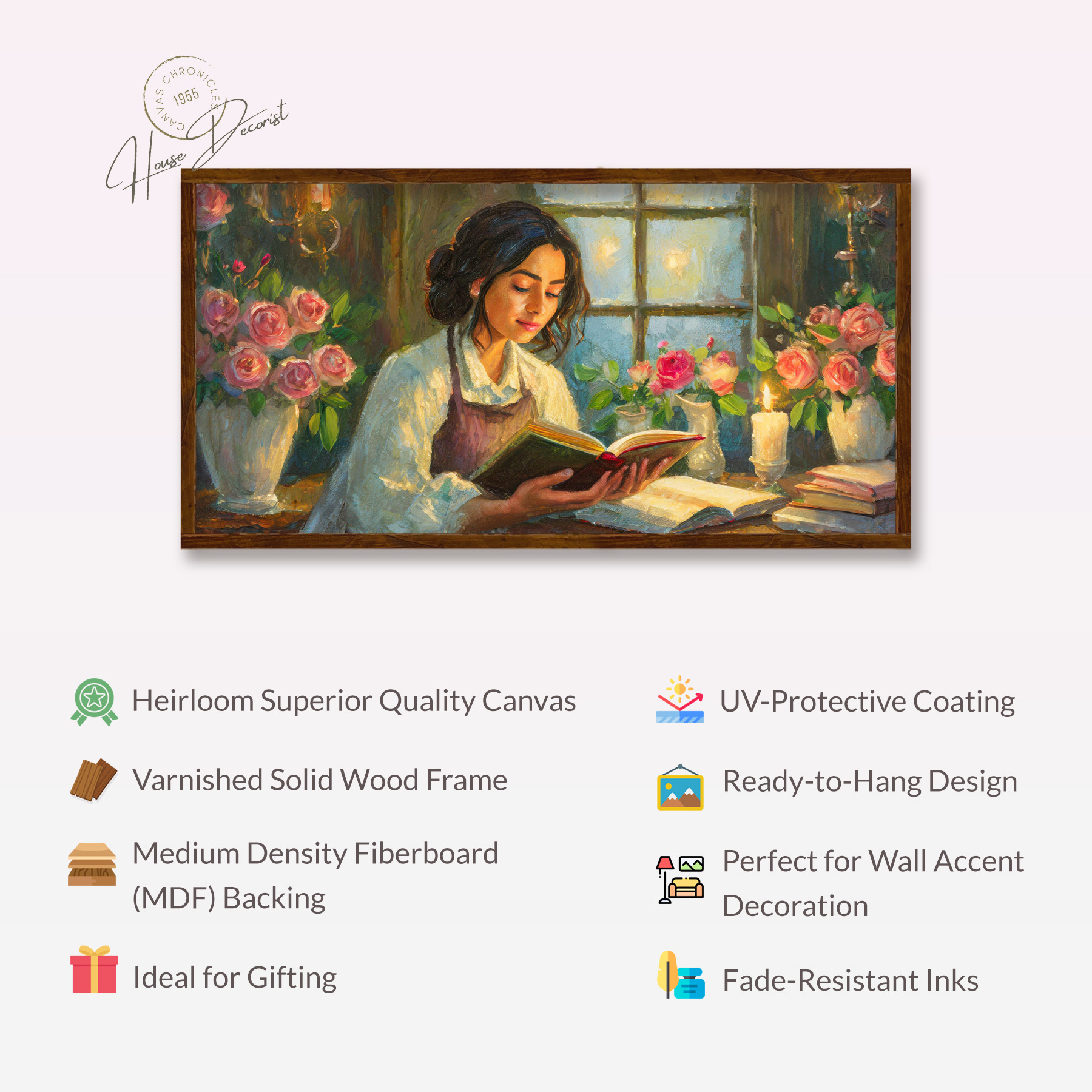 Immerse your space in timeless elegance with our canvas art. Crafted with heirloom quality, this piece features a varnished solid wood frame and meticulous craftsmanship. Ideal for gifting or wall accent decoration, it’s a versatile decor piece that blends charm and sophistication effortlessly.